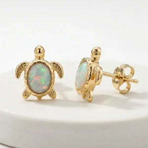 Сребърни позлатени обеци Костенурка с опал на винт