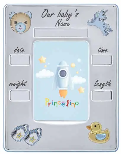 Бебешка, детска персонализирана сребърна рамка визитка за момче,22х26.5см