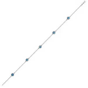 Сребърна гривна за крак с верижка с топчета и кръгла висулка с цирконии "Окото на Назар",светлосиньо
