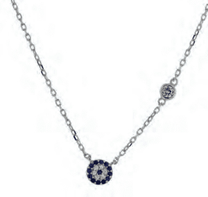Сребърно колие с кръгла висулка с цирконии "Синьо око",тъмносиньо