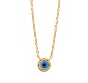 Позлатено сребърно колие с кръгла висулка в тъмносиньо "Окото на Назар"