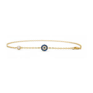 Позлатена сребърна гривна Окото на Назар със синьо око