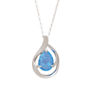 Сребърно колие с бяла основа "Капка със синьо око",светлосиньо