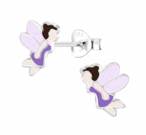 Детски сребърни обеци Лилава балерина, тип винт