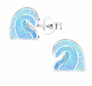 Детски сребърни обеци Морски вълни, тип винт