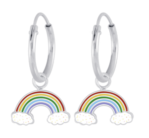 Детски сребърни обеци Дъга, тип халка