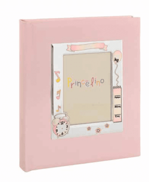 Детски фото албум със сребърна рамка и декоративен надпис за момиче