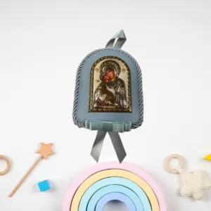 Детска сребърна икона за момче син фон с Богородица Одигитрия