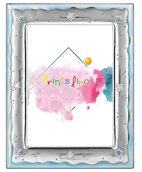 Бебешка фоторамка с релефни звездички в син цвят и размери 13х18см.