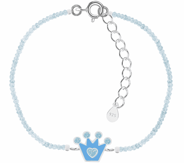 Детска сребърна гривна Синя корона с кристални камъни – елегантност и сигурност за всяка детска ръка