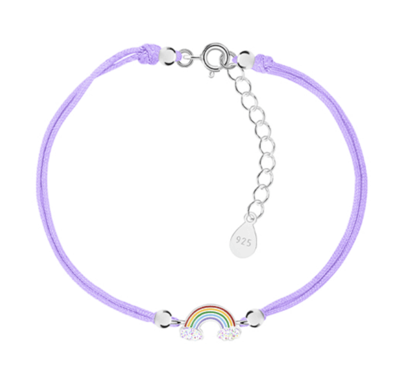 Детска сребърна гривна с лилав конец Дъга – цветни мечти за малки принцеси