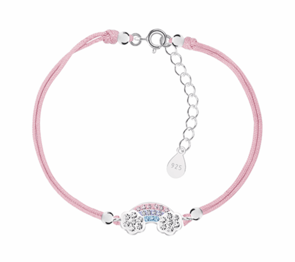 Детска сребърна гривна с розов конец и блестяща дъга| Сребро 925