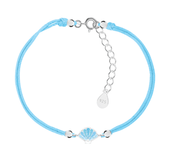 Детска сребърна гривна със син конец Морска мида