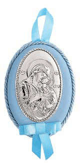 Детска икона Дева Мария и Младенеца в син цвят – прекрасен подарък с духовна закрила за кръщене и специални моменти