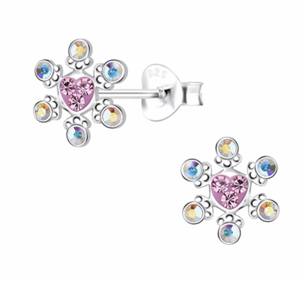 Детски сребърни обеци Блестящо цвете, тип винт – Нежен блясък и сигурност