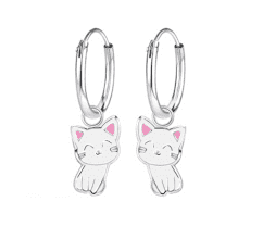 Детски сребърни обеци Бели котенца | 925 сребро, тип халка