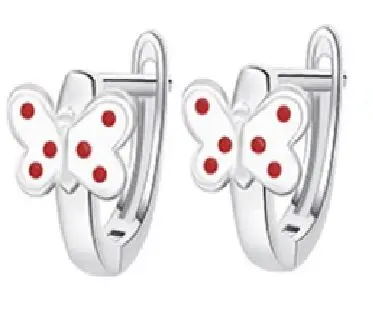 Детски сребърни обеци под формата на пеперудки, бели с червени точки, английско закопчаване