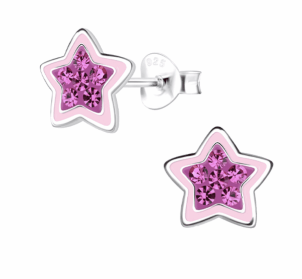 Очарователни детски сребърни обеци Блестяща розова звезда от сребро 925 с надеждно винтово закопчаване. Хипоалергенни и удобни за чувствителни детски уши. Блясъкът и розовият нюанс създават магична атмосфера и добавят игрив акцент към всяко облекло.