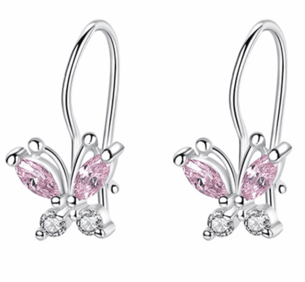 Очарователни детски сребърни обеци пеперуди с блестящи камъни и удобно бъбреково закопчаване. Перфектни за момичета с фин вкус! Поръчай от Happy Market.