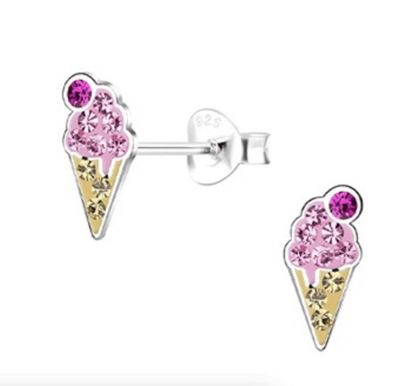 Детски сребърни обеци – Блестящи розови сладоледи от Сребро 925