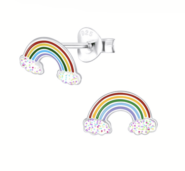 Детски сребърни обеци Дъга, тип винт – цветен акцент всеки ден