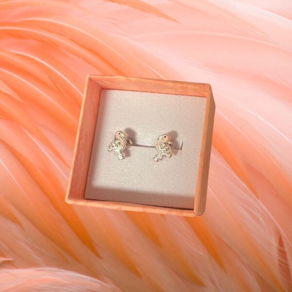 Очарователни детски сребърни обеци Фламинго от сребро 925 с надеждно закопчаване тип винт. Хипоалергенни и удобни, с ярък и весел дизайн, подходящи за ежедневно носене и специални моменти.