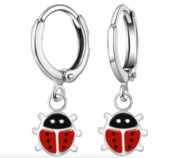 Детски сребърни обеци Калинка, скрито английско закопчаване