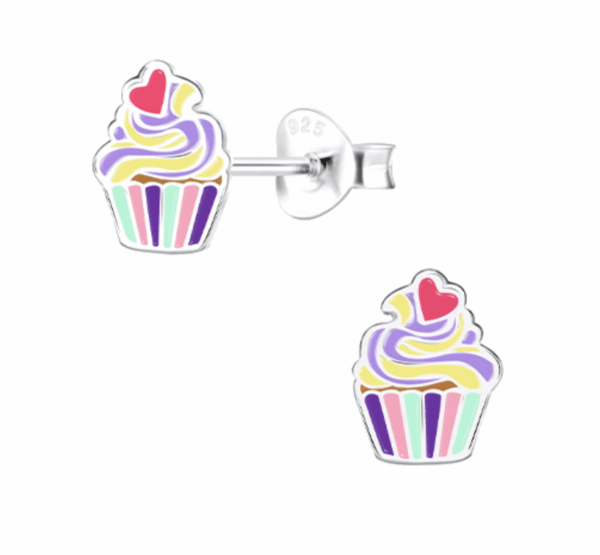 Детски сребърни обеци Кексче сърце, тип винт – Сладост, блясък и безопасен комфорт