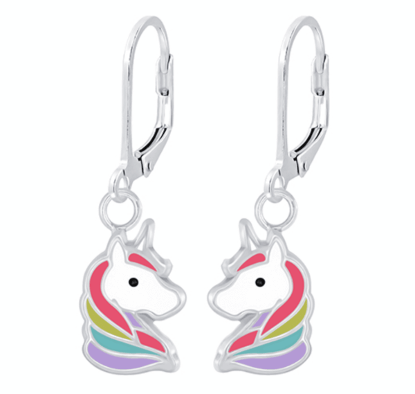 Детски сребърни обеци Магически еднорог, тип лостче