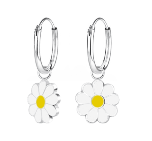 Със своя нежен дизайн на маргаритки, тези обеци придават на всяка малка дама изключителен чар и красота. Закопчаването тип халка ги прави удобни за носене и подходящи за деца от всяка възраст.
