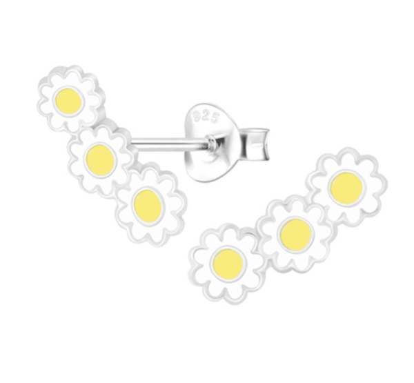 Детски сребърни обеци Маргаритки, тип винт