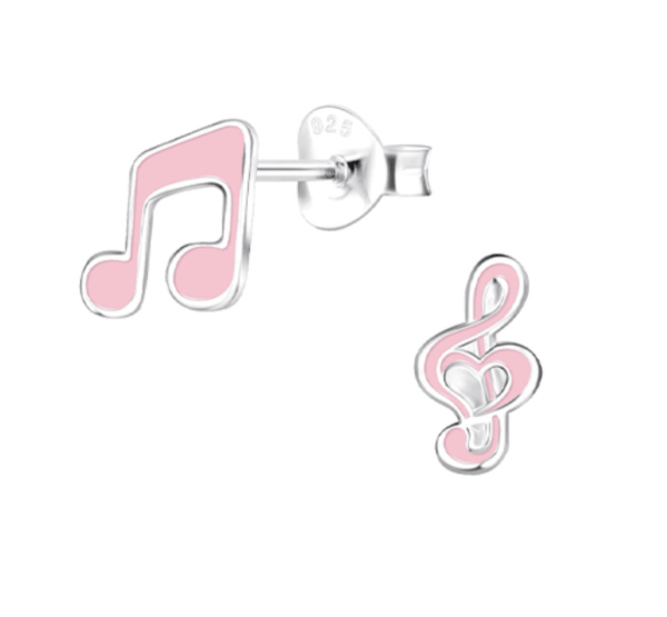 Очарователни детски сребърни обеци Ноти от сребро 925 с надеждно закопчаване тип винт. Хипоалергенни и удобни, с игрив музикален дизайн, който носи радост и усмивки всеки ден.