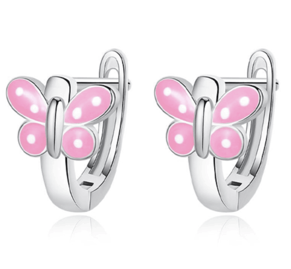 Детски сребърни обеци Пеперуда, английско закопчаване