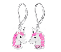 Детски сребърни обеци Розов еднорог, тип лостче