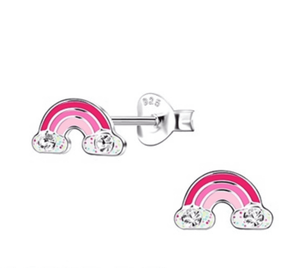 Очарователни детски сребърни обеци Розова дъга от сребро 925 с надеждно закопчаване тип винт. Удобни и хипоалергенни, подходящи за всекидневно носене и специални поводи.