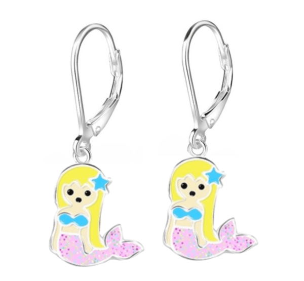 Детски сребърни обеци Розова русалка – вълшебен морски акцент за момичета