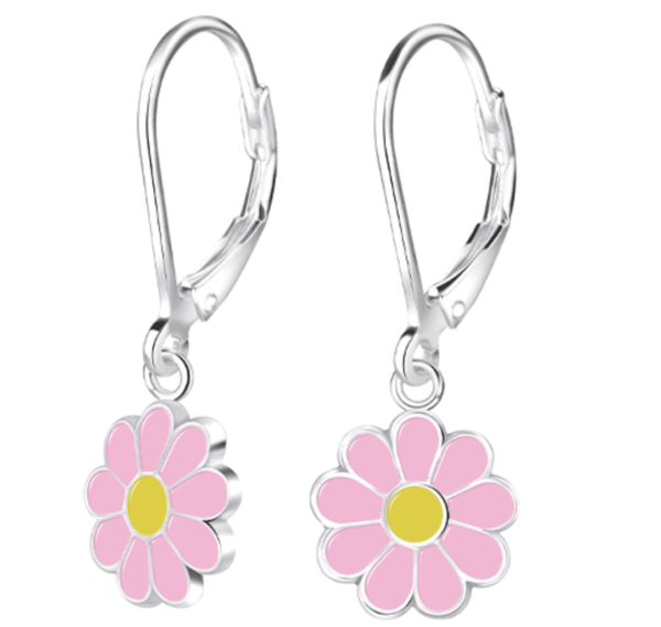 Детски сребърни обеци Розово цвете – стилни и безопасни
