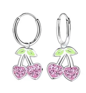 Очарователни детски сребърни обеци Черешки с бляскави цирконии. Обеци тип халка от сребро 925 – перфектни за момичета. Подходящи за подарък!