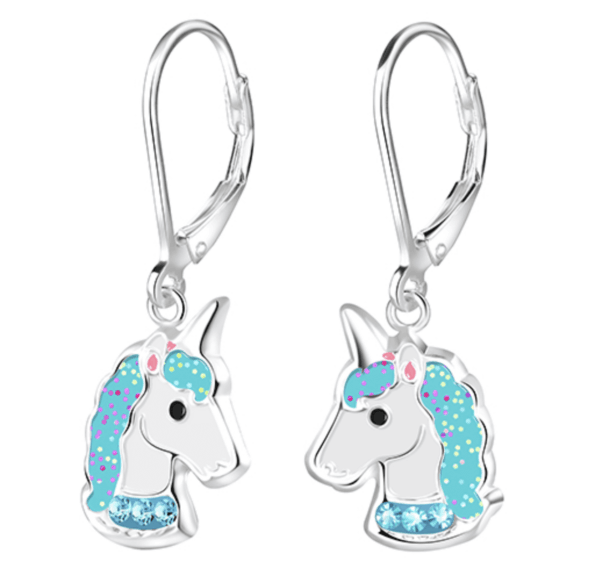 Детски сребърни обеци Син еднорог, тип лостче – магия и безопасност за всяка малка госпожица!