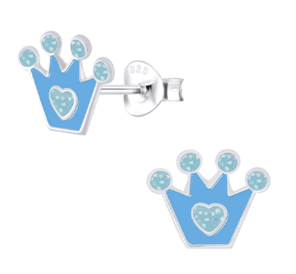 Детски сребърни обеци Синя корона, тип винт – за всяка малка принцеса със стил