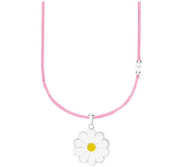 Детско сребърно колие с розов конец и висулка Маргаритка – нежност и свежест за всяко момиче