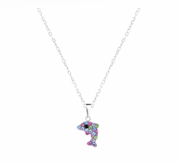 Детско сребърно колие с висулка Блестящ шарен делфин – перфектен подарък за деца