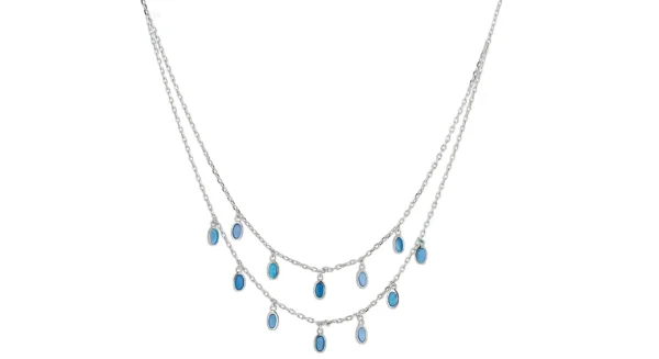 Двуредово сребърно колие с висулки от син опал