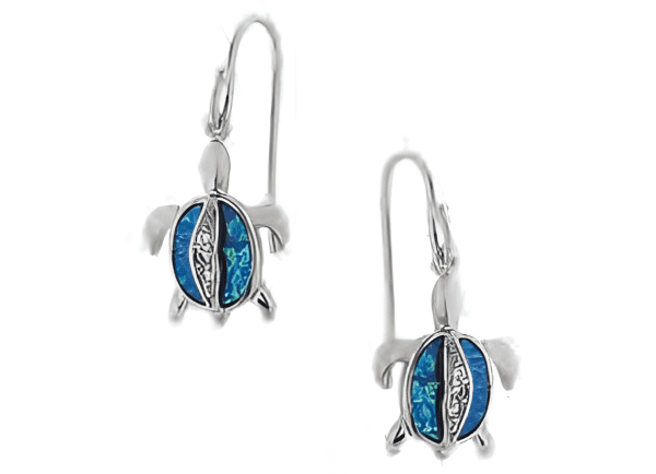 Елегантни сребърни обеци „Костенурки“ с опал и закопчаване с кука