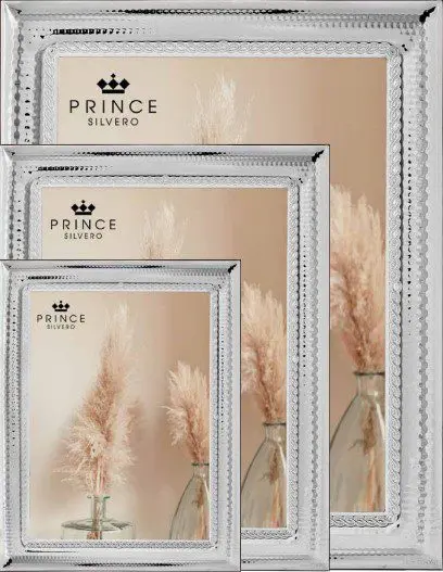Релефна рамка за снимки с релефен контур с декоративни елементи, от метална сплав, която съдържа сребро по метода на тънкослойно покритие,18х24см