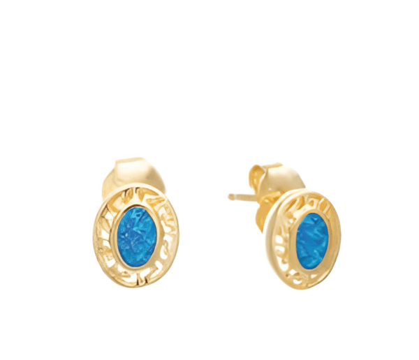 Малки овални позлатени обеци с опал и меандър, тип винт, S