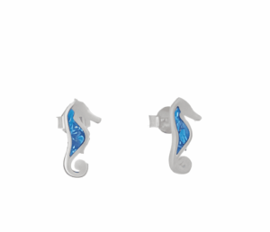 Малки сребърни обеци с опал „Морско конче“, тип винт