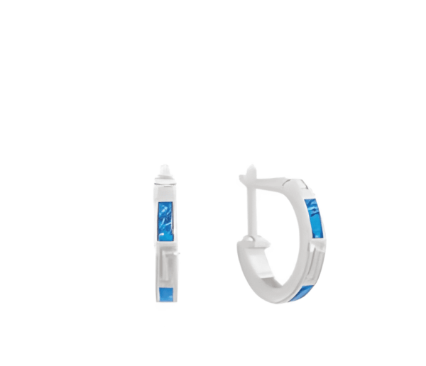 Малки сребърни обеци тип халка с опал и меандър, английско закопчаване