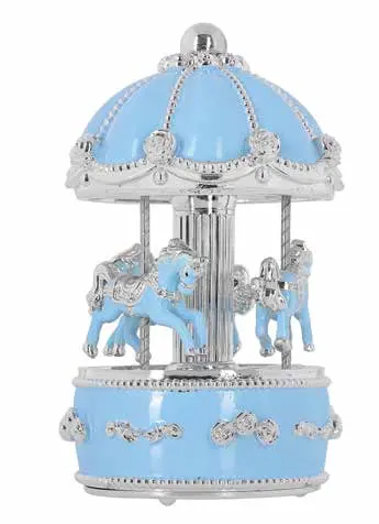 Музикална сребърна въртележка с кончета за момче – стилен подарък с мелодия и чар