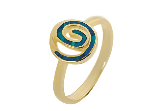 Завладейте вниманието с този изключителен позлатен сребърен пръстен от Happy Market със спираловидна форма, който обединява златната луксозност, сребърния блясък и красотата на опала. Този бижутерски аксесоар е върховен израз на елегантност и стил.
